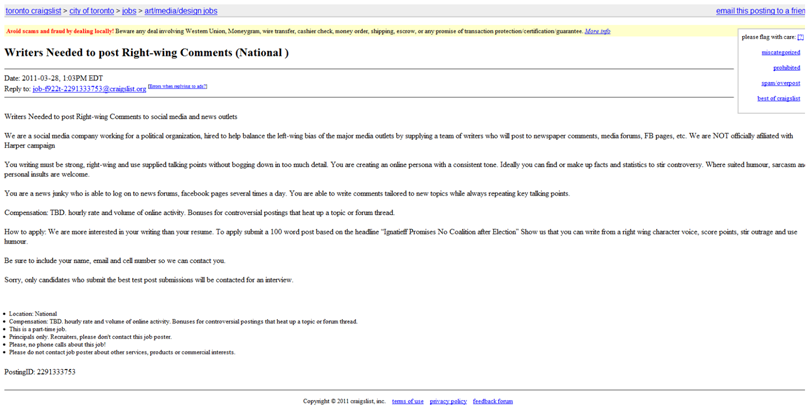 Of course, we all know that this post with Craigslist is NOT affiliated with the Harper campaign. No, I suppose it’s not.
